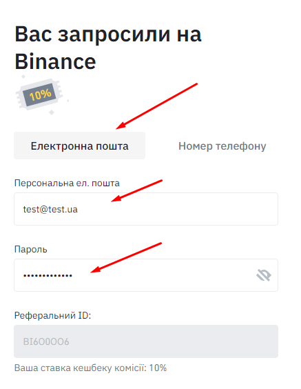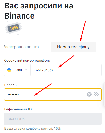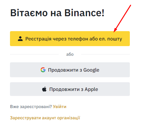Реєстрація на Binance